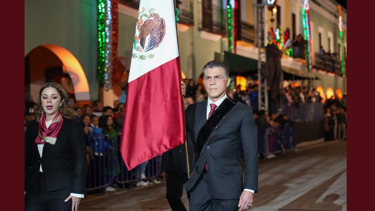 #TLAXCALA El alcalde Alfonso Sánchez García custodió el lábaro patrio y leyó el acta de independencia durante la Noche de El Grito